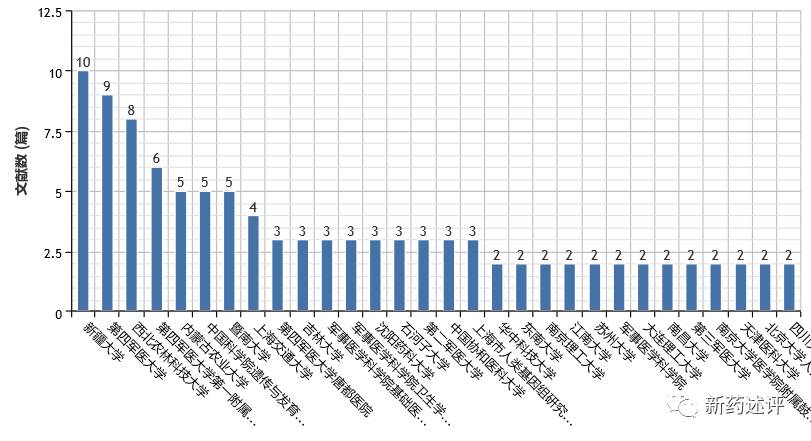 从中文文献发表量来看,2012-2016年是单域抗体类文章刊发的井喷之年。在单域抗体筛选研究上,具有动物资源优势的新疆大学和西北农林科技大学在文章发表量上排在了前列。这里包含了与康宁杰瑞有合作关系的新疆大学/东南大学/军事医学科学院等研究单位。近两年年均文献发表量约20-30篇。文章发表的研究内容大部分集中在单域抗体筛选、抗体文库构建,质粒制备等基础研究上,而制备新型抗体以及其药效药理学研究的相关文章很少。